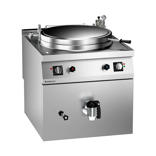 Tiganj od nerđajućeg čelika AISI 304, vrh debljine 20/10 mm. Posuda za kuvanje sa postoljem od nerđajućeg čelika AISI 316L i zidovima od nerđajućeg čelika AISI 304. Grejanje pomoću dva nezavisna električna elementa kontrolisana 4-pozicionim selektorom. Generisanje pare niskog pritiska u jakni. Poklopac sa zadnjim šarkama i uravnotežen.