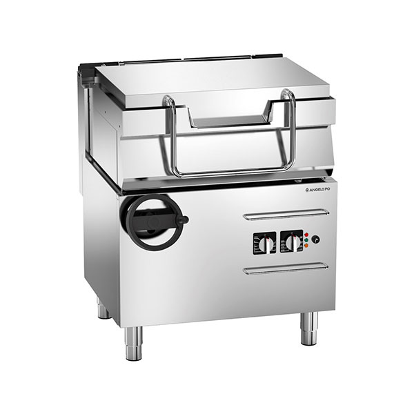 Bratt tiganj sa strukturom od nerđajućeg čelika AISI 304, vrh debljine 20/10 mm. Rezervoar od nerđajućeg čelika AISI 304 debljine 20/10 mm, potpuno radijusan. Dno od nerđajućeg čelika AISI 430 debljine 10 mm. Maksimalni kapacitet 60 l. Grejanje električnim elementima. Kontrola temperature preko termostata 60-300°C, sigurnosni termostat. Ručno naginjanje bunara.