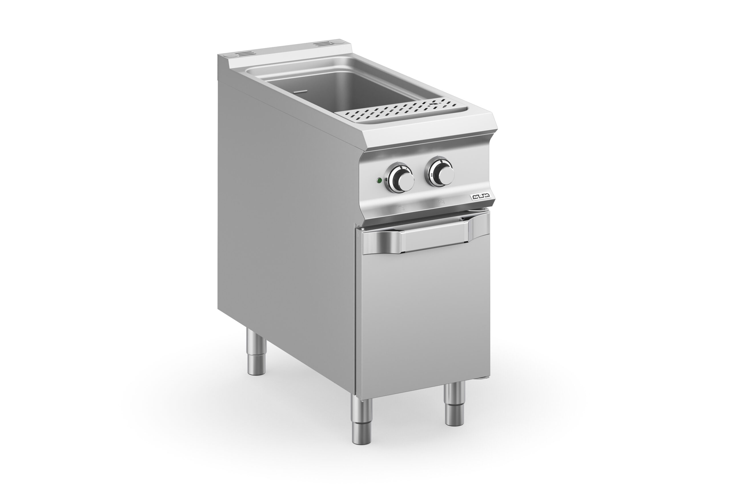 Izliveni rezervoari su od antikorozivnog nerđajućeg čelika AISI 316, sa zaobljenim uglovima za lako čišćenje. Opcione korpe za testeninu su od nerđajućeg čelika AISI 304 18/10 sa termičkom ručkom. Električni ventil za punjenje vode.