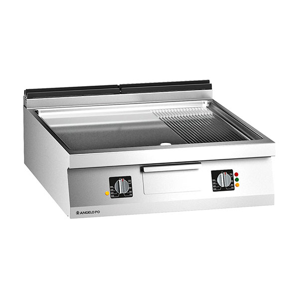 Rešetka od nerđajućeg čelika AISI 304, debljina vrha 20/10 mm. Ploča za kuvanje od čelika Fe510D sa površinskom obradom tvrdog hroma. COOKING-PRO SISTEM. Isporučuje se sa: pločastim utikačem. Grejanje pomoću dva nezavisna grejna elementa od nerđajućeg čelika AISI 309 postavljenih ispod ploče, sigurnosni termostat. Radna temperatura (min-mak): 70-260°C. Predpodešavanje za daljinsko upravljanje vršnom snagom.
