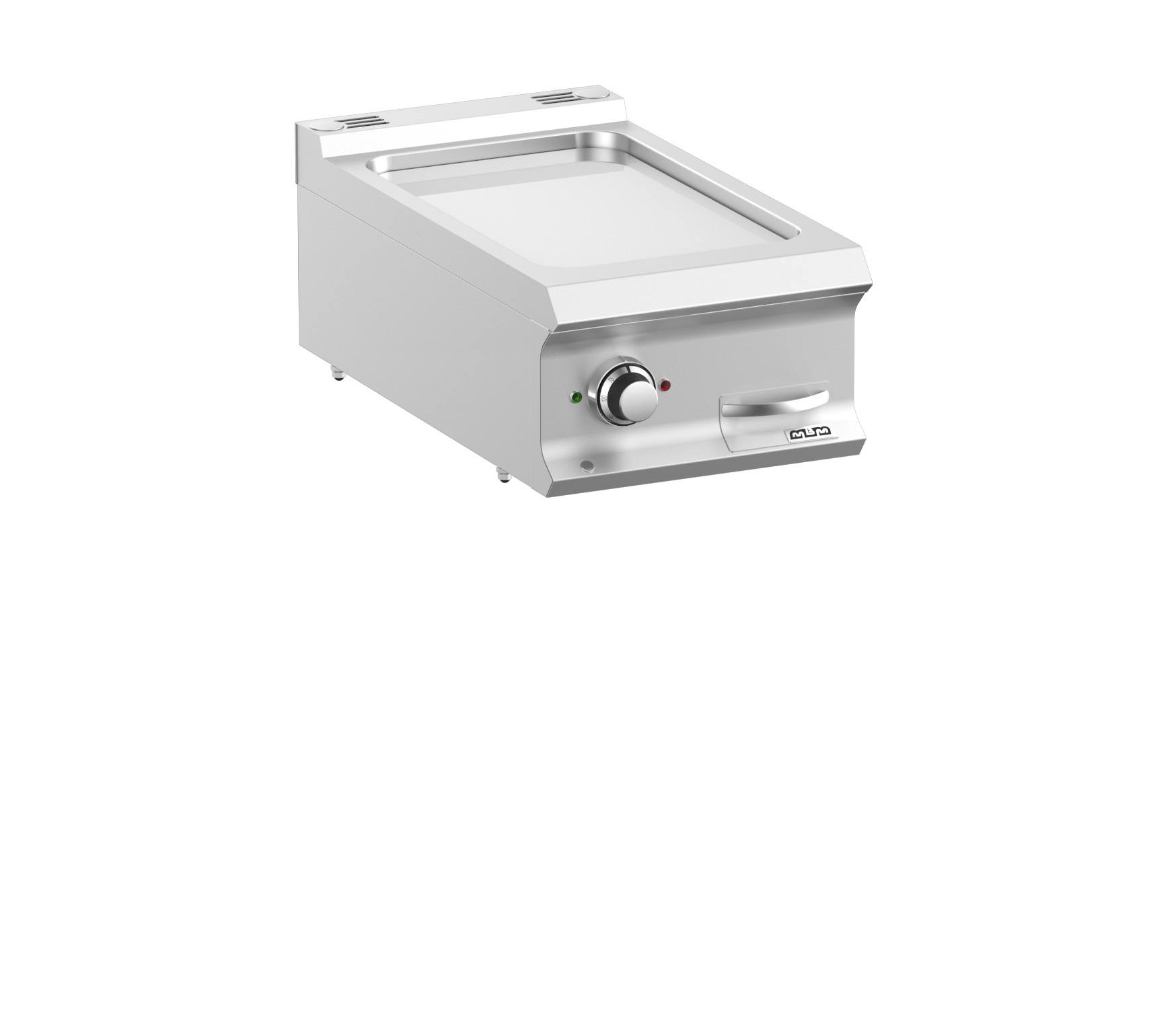 Ploča za kuvanje sa zaobljenim prednjim uglovima od glatkog čelika, sa poliranim ili čvrstim hromom, ima debljinu od 15 mm.