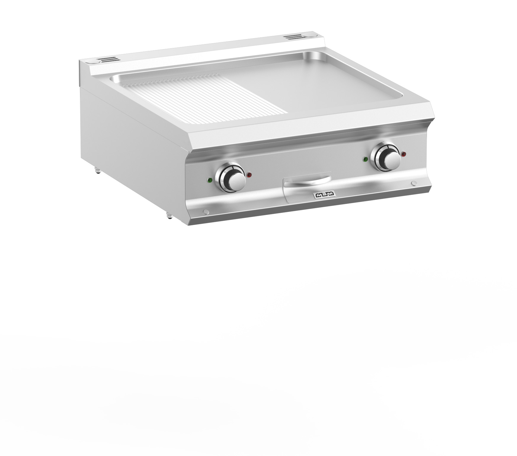 Ploča za kuvanje sa zaobljenim prednjim uglovima od glatkog čelika, sa poliranim ili čvrstim hromom, ima debljinu od 15 mm.