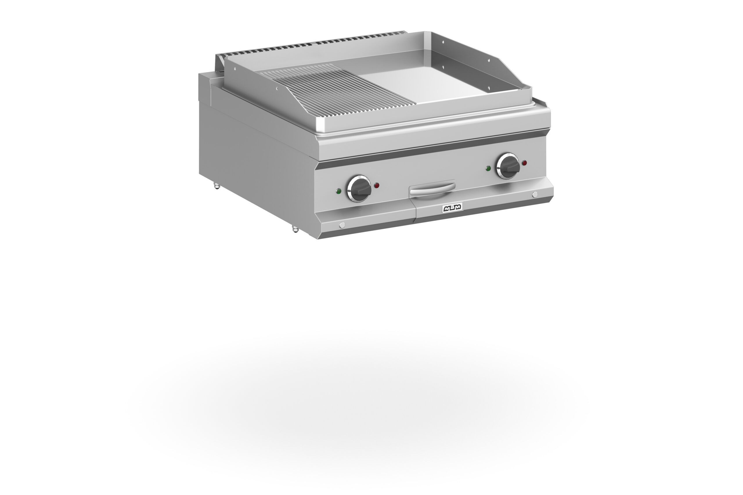 Ploča za kuvanje sa zaobljenim prednjim uglovima od glatkog čelika, sa poliranim ili čvrstim hromom, ima debljinu od 15 mm. uklonjivi umivaonik od nerđajućeg čelika kapaciteta do 2 litra za lakše čišćenje i ispuštanje masti. Kod modela od 70 cm moguće je razlikovati kuvanje zahvaljujući nezavisnim gasnim gorionicima/električnim grejnim elementima. Hromirana završna obrada omogućava uzastopno kuvanje različitih namirnica bez rizika od prenošenja mirisa i ukusa, čime se izbegava čišćenje ploče za pečenje između različitih kuvanja.