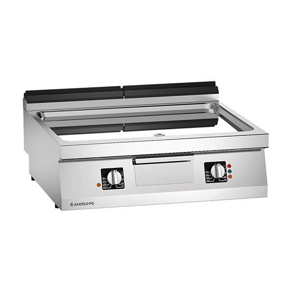 Rešetka od nerđajućeg čelika AISI 304, debljina vrha 20/10 mm. Ploča za kuvanje od čelika Fe510D sa površinskom obradom tvrdog hroma. EVEN-PRO SISTEM. Isporučuje se sa: pločastim utikačem. Grejanje grejnim elementima od nerđajućeg čelika AISI 309, sigurnosni termostat. Radna temperatura (min-mak): 70-260°C.
