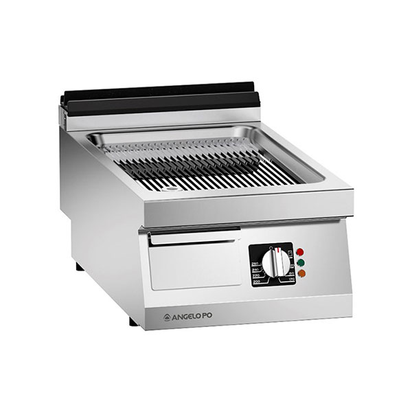 Rešetka od nerđajućeg čelika AISI 304, debljina vrha 20/10 mm. Ploča za kuvanje od čelika Fe510D sa površinskom obradom tvrdog hroma. EVEN-PRO SISTEM. Isporučuje se sa: pločastim utikačem. Grejanje grejnim elementima od nerđajućeg čelika AISI 309, sigurnosni termostat. Radna temperatura (min-mak): 70-260°C.