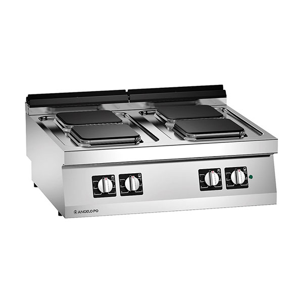 Električni opseg ključanja sa konstrukcijom od nerđajućeg čelika AISI 304, debljina vrha 20/10 mm. Kuhanje kvadratne ploče od livenog gvožđa, vodonepropusne, opremljene termo zaštitnim uređajima, 7-položajni prekidač za svaku ploču.
