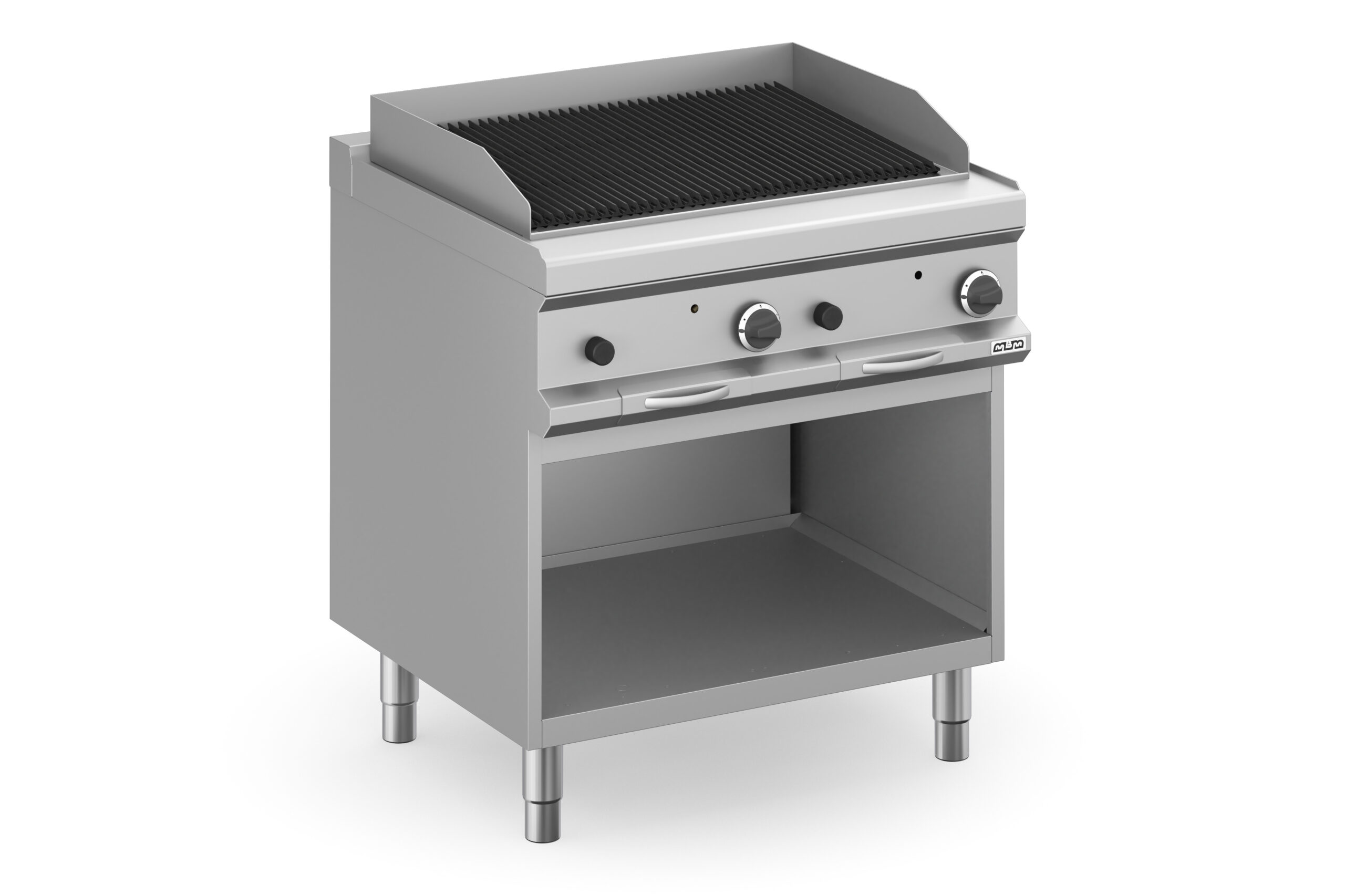 Rešetka za kuvanje je od livenog gvožđa, dvostrano meso/riba. Fioka od nerđajućeg čelika koja se može izvaditi sakuplja masnoću tokom kuvanja. Puni moduli (80 cm) imaju nezavisne grejne elemente koji omogućavaju različito kuvanje. Radna ploča od 1 mm od nerđajućeg čelika AISI 18/10. Odlično poravnanje sa zglobovima.