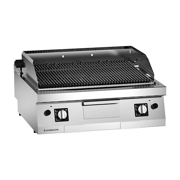 Roštilj od nerđajućeg čelika AISI 304, debljina vrha 20/10 mm. Rešet za kuvanje od emajliranog livenog gvožđa sa specijalnom nanotehnološkom površinskom obradom za bolje klizanje masti, isporučuje se sa štitnicima od prskanja od nerđajućeg čelika i četkom za čišćenje. Grejanje sa dva nezavisna gasna gorionika kontrolisana pilot lampom, termoelementom i piezo-električnim paljenjem. Kuvanje kroz zračenje keramičkih cigli zagrejanih gorionikom.