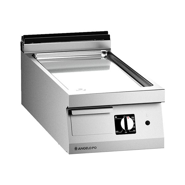 Rešetka od nerđajućeg čelika AISI 304, debljina vrha 20/10 mm. Ploča za kuvanje od čelika Fe510D sa površinskom obradom tvrdog hroma. Isporučuje se sa: pločastim utikačem. Grejanje preko grupe gorionika kontrolisano modulacionim termostatskim ventilom, sigurnosnim termostatom. Radna temperatura (min-maks): 100-280°C.