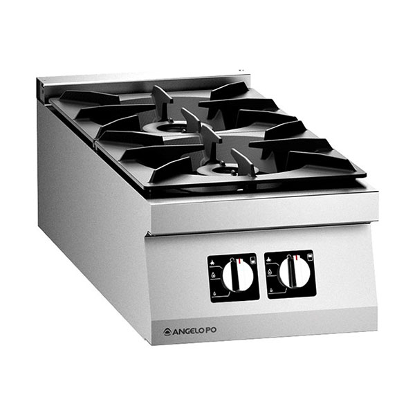 Gasni opseg ključanja gorionika od nerđajućeg čelika AISI 304, debljina vrha 20/10 mm. Gornje rešetke i gorionici od emajliranog livenog gvožđa. Uklonjivi gorionici kontrolisani ventilom sa poklopcem gorionika sa dvostrukom krunom. Pilot svetlo i termoelement. Presovano i zapečaćeno udubljenje gorionika.