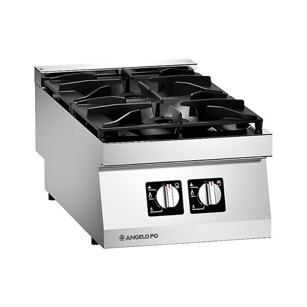 Gasni opseg ključanja gorionika od nerđajućeg čelika AISI 304, debljina vrha 20/10 mm. Gornje rešetke i gorionici od emajliranog livenog gvožđa. Uklonjivi gorionici kontrolisani ventilom sa poklopcem gorionika sa dvostrukom krunom. Pilot svetlo i termoelement. Presovano i zapečaćeno udubljenje gorionika.
